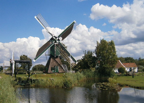 Ansichtkaart met de Hollands kenmerkende landschappen: De Trouwe Whagter bij Tienhoven (Wipmolen)