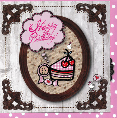 Met roze enveloppe met witte stippen.